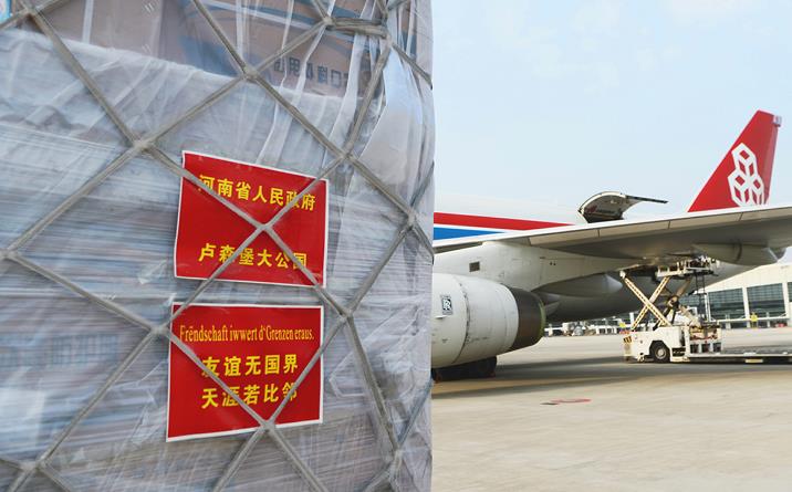 2020年2月,疫情爆發初期,盧森堡貨航和河南航投共同積極加入抗“疫”戰斗,除了為中國員工提供口罩、消毒棉片、防護服等物資支援外,還在原定的春節假期期間,加運了95噸醫療物資馳援中國抗“疫”一線,并根據國內外市場的需要有序增加運力。當年3月,河南省委、省政府為盧森堡緊急籌措了包括4500件醫用防護服、50萬只醫用外科口罩、5700只醫用N95口罩、10萬雙醫用手套、600只額溫槍、2萬瓶洗手液、1080副醫用護目鏡等在內的首批醫療物資,并通過鄭州—盧森堡貨運航班直接運抵盧森堡。鄭盧“空中絲綢之路”被盧森堡政府譽為“盧森堡及其他歐洲地區的生命線,是一條雪中送炭的空中橋梁?!痹谶@條絲路的連接下,豫盧雙方成為共建共享、休戚與共的“一家人”。